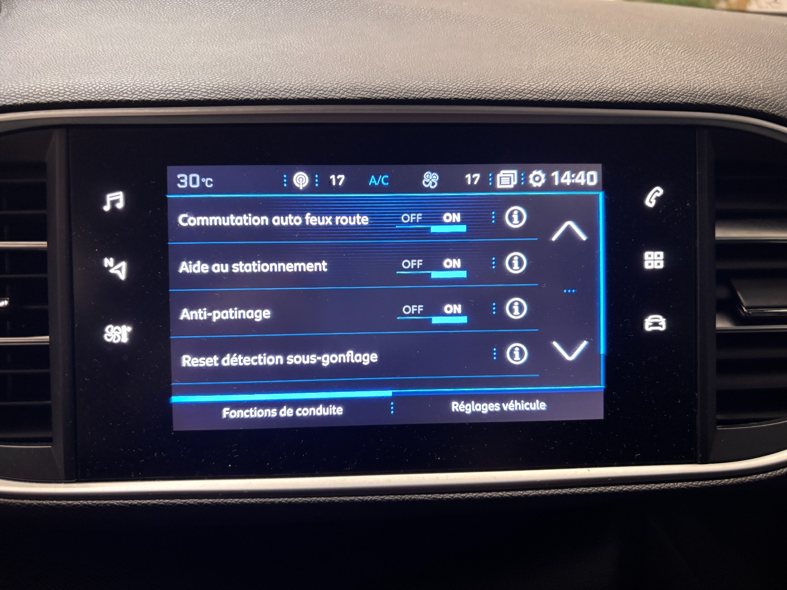 - Commandes au volant